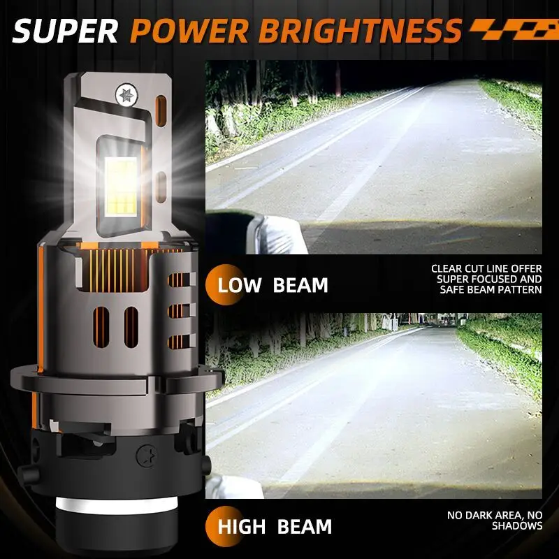These D2S and D4S LED car headlight bulbs deliver 50,000LM of ultra-bright illumination for superior road visibility. Compatible with D2R and D4R HID ballasts for easy replacement. The 6000K white light provides clear, daylight-like brightness for safe nighttime driving. Canbus design prevents dashboard errors and flickering in most vehicles. Rated at 100W, these bulbs offer high output while remaining energy-efficient. The 1:1 design ensures proper fitment and beam pattern. Plug-and-play installation allows quick setup without modifications. Durable construction resists heat, vibration, and impact. Ideal for use as main headlights or fog lamps. Upgrade your car lighting system with these high-performance LED Xenon bulbs.