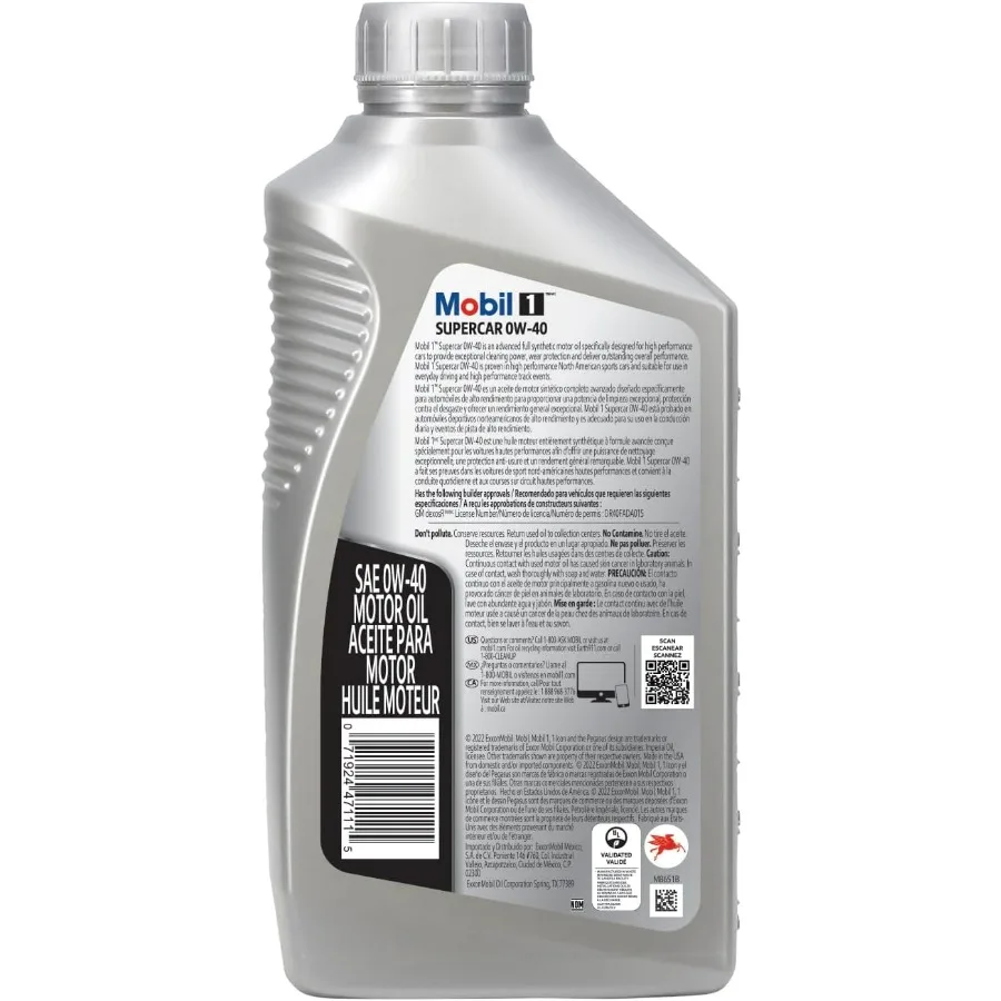 This full synthetic motor oil provides superior protection and performance for high-performance engines. Formulated with advanced additives to reduce wear, deposits, and friction. The 0W-40 viscosity ensures excellent flow at low temperatures and stable performance at high temperatures. Designed for supercars and performance vehicles requiring premium lubrication. Each pack includes six 1-quart bottles for convenient engine maintenance. Helps improve fuel efficiency and prolong engine life. Reduces engine noise and promotes smooth operation. Compatible with a wide range of gasoline and diesel engines. Meets or exceeds industry standards for modern vehicles. Keep your engine running at peak performance with this advanced synthetic motor oil.