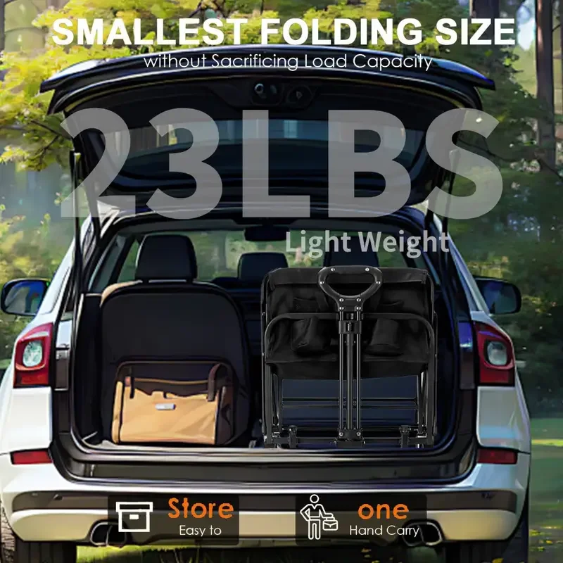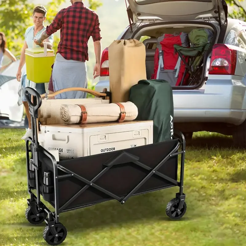 This heavy duty foldable wagon makes hauling items simple and efficient. Built with a strong frame, it supports loads up to 330 or 450 pounds. The durable all-terrain wheels ensure smooth movement on grass, sand, or gravel. Its foldable design allows easy storage and transport when not in use. Spacious capacity makes it perfect for gardening, camping, or shopping. Side pockets provide extra room for small tools and accessories. The sturdy handle offers comfortable grip and effortless steering. Made from high-quality materials, it’s built to last through frequent use. Setup takes only seconds with no tools required. Enjoy convenience and strength with this versatile utility wagon for home or outdoor activities.
