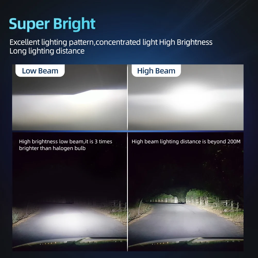 These mini LED headlight bulbs deliver 15,000LM of bright illumination for superior road visibility. Compatible with H4, H7, H11, H13, H27, 880, 9005 HB3, 9006 HB4, and 9007 sockets. The 6500K white light provides crisp, daylight-like clarity for safer night driving. Compact mini design fits most headlamp housings without modification. Energy-efficient LEDs provide high brightness while reducing power consumption. Dual high and low beam functionality ensures optimal lighting performance. Durable construction resists heat, vibration, and harsh weather conditions. Plug-and-play installation makes setup quick and convenient. Ideal for cars, trucks, SUVs, and motorcycles. Upgrade your vehicle’s front lighting with these high-performance LED headlamp bulbs.