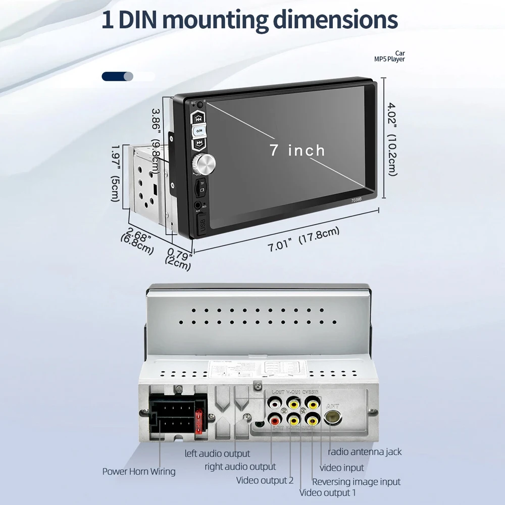 This 7-inch touch screen car stereo delivers clear visuals and smooth operation. It features Bluetooth connectivity for hands-free calling and wireless music streaming. The USB and AUX inputs provide multiple options for playing your favorite media. FM radio support allows access to local stations with strong reception. Mirror Link enables smartphone screen sharing for navigation and apps. Its universal 1 DIN design fits most vehicle dashboards. The HD display ensures crisp images and easy menu navigation. Simple button layout and responsive touch controls improve usability. Ideal for upgrading your car’s entertainment system. Enjoy a modern, convenient, and connected driving experience with this versatile multimedia player.